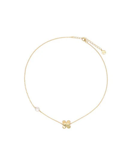 Collar corto de 40/45 cm en plata bañada en oro de 18k con perla redonda blanca de 7mm. Fortuna y magia en cada una de las líneas de la colección Ayanti.